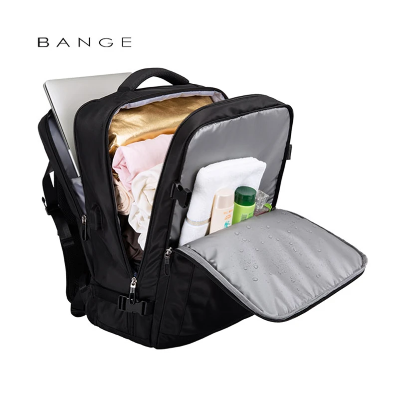 کیف کوله لپتاپ بنج از پارچه پلی استر 1680D، باکیفیت بالا ساخته شده است که آن را در برابر خش و سایش نیز مقاوم کرده است. جنس آستر داخلی کوله نیز بسیار مقاوم و محکم است. پارچه ضد آب به کار رفته در آن موجب میشود تا شما با خیال راحت آن را در هر نوع شرایط آب و هوایی استفاده نمایید بدون اینکه وسایل داخل کوله آسیبی ببیند. در صورت خیس شدن با یک پارچه آن راخشک نمایید و در شرایط دیگر با یک پارچه نم دار کاملا تمیز میشود.کوله لپ تاپ 15.6 اینچ بنج مدل Bange BG1801 با ابعاد خارجی 31.5x46x20 سانتیمتر میتواند هر آنچه که شما نیاز دارید را در خود جای دهد. دو محفظه جداگانه، با ظرفیت زیاد به قدر کافی بزرگ بوده، و برای رفع نیازهای شما بسیار مناسب میباشد. با وجود جیبهای جداگانه و زیپهای صاف و باکیفیت وسایل شما در کوله پشتی به طور منظمی سازماندهی میشود و دسترسی به آنها نیز آسانتر است.محفظه دیگر که در قسمت جلوی کوله قرار دارد خود دارای جیب مجزای زیپ دار است. شما میتوانید به راحتی وسایل خیس و مرطوب اعم از حوله، شامپو و کرم خود را در این قسمت قرار دهید. رطوبت لوازم این قسمت هرگز به جیبهای دیگر منتقل نمیشود. همچنین کیف کولهای ضد آب بنج دارای دو جیب کوچک زیپدار عمودی در قسمت جلو بوده که با طراحی زیبا و منحصر به فردش برای قرار دادن لوازم ضروری مورد نیاز مانند دفترچه، هندزفری و شارژ مناسب است. در قسمت پشت کوله یک جیب زیپدار به صورت مخفی تعبیه شده که برای قرار دادن گوشی موبایل مناسب است